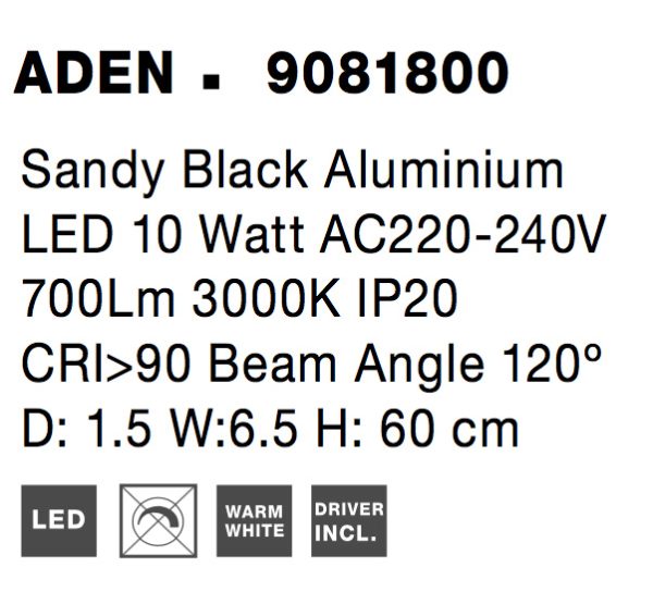 Ετικέτες: LED, Απλίκα Φωτιστικό Τοίχου Μαύρο ADEN 9081800 Nova Luce