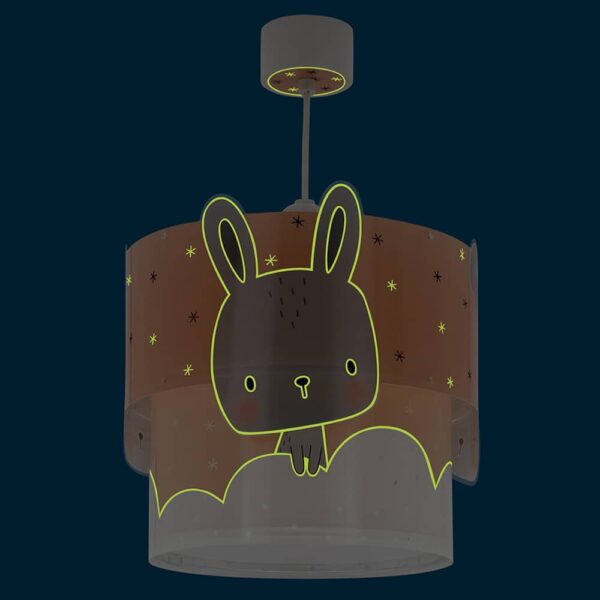 Καλωσορίστε το παιδί σας σε ένα δωμάτιο πλημμυρισμένο από μαγεία με αυτό το παιδικό φωτιστικό οροφής με θέμα τα λαγουδάκια κατάλληλο για γενικό φωτισμό. Είναι διπλού τοιχώματος με διάφανο το εξωτερικό του και μαγικά φωσφορίζοντα μέρη στο σκοτάδι. Κατασκευασμένο από συνθετικό υλικό αντοχής πολυπροπυλενίου και ανεξίτηλες εκτυπώσεις. Παρέχεται διαχυτής φωτός που προστατεύει τα μάτια των παιδιών μικρότερων ηλικιών αλλά και προσφέρει ομοιόμορφο φωτισμό σε κάθε παιδικό δωμάτιο. Το κιτ ανάρτησης είναι πλήρες και περιέχει σετ γάντζου, καλώδιο ρυθμιζόμενο στο ύψος καθώς και ροζέτα κάλυψης σημείων σύνδεσης & στήριξης.