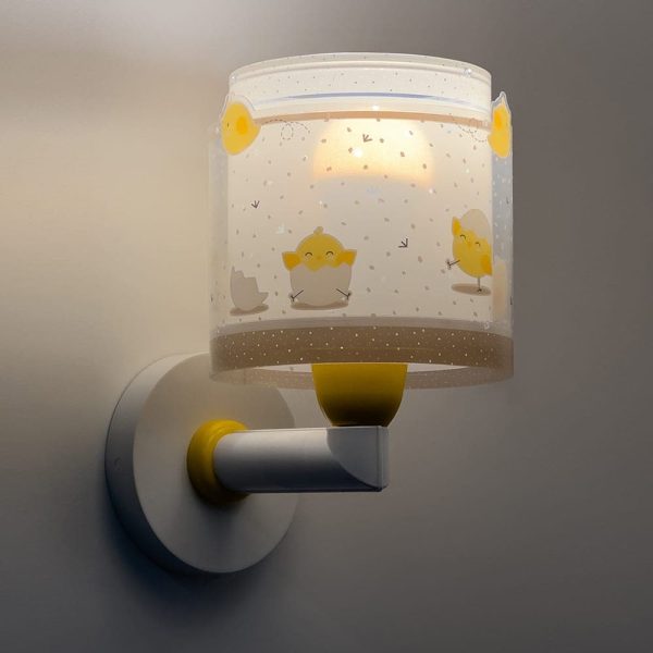 Απλίκα τοίχου με θέμα χαρούμενα κοτοπουλάκια, ιδανικά σχεδιασμένη για γενικό ή συμπληρωματικό φωτισμό. Φωτίζει και προσθέτει διασκεδαστικό χαρακτήρα και χαρούμενο άγγιγμα σε κάθε παιδικό δωμάτιο ακόμα και στο σκοτάδι με τα εξωτερικά φωσφορίζοντα μέρη του. Η Baby Chick απλίκα τοίχου διπλού τοιχώματος είναι κατάλληλη ακόμα και για διάβασμα πάνω από το προσκέφαλο του κρεβατιού. Παρέχει ομοιόμορφο φως δημιουργώντας περιβάλλον που ενθαρρύνει τα παιδιά να επιδοθούν σε ότι τους αρέσει περισσότερο, διασκεδάζοντας ή δημιουργώντας! Η Baby Chick απλίκα τοίχου διπλού τοιχώματος συμπληρώνει τα υπόλοιπα παιδικά φωτιστικά της συλλογής και είναι κατασκευασμένη εξ ολοκλήρου στην Ευρώπη.