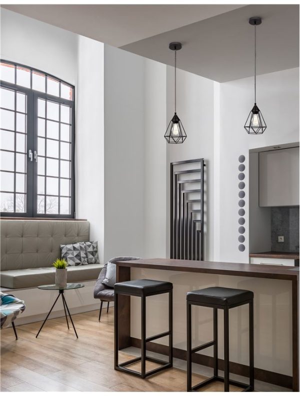 Μοντέρνο Φωτιστικό Led Κρεμαστό οροφής κατασκευασμένο από Μαύρο Μεταλλικό, Μαύρο & Άσπρο Υφασμάτινο Σύρμα.