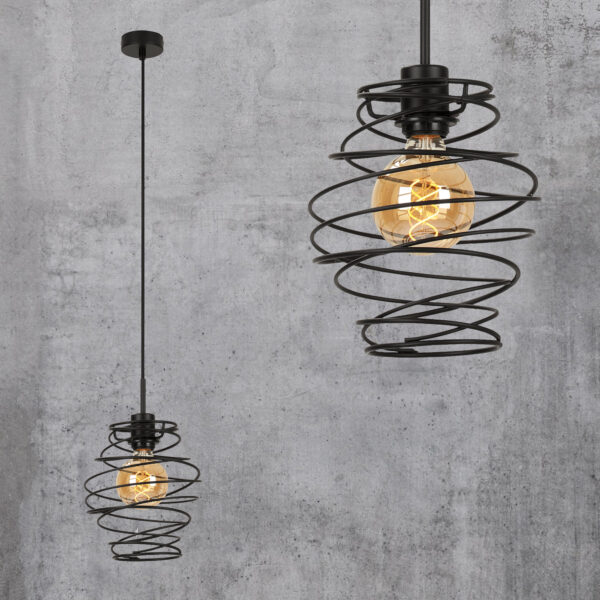 Αυτό το μαύρο κρεμαστό φωτιστικό 1 λαμπτήρων με τον απλό αλλά εντυπωσιακό ρετρό/vintage σχεδιασμό του χάρη στις μεταλλικές σπείρες ταιριάζει τέλεια σε όλα τα δωμάτια και γίνεται γρήγορα εντυπωσιακό – ευέλικτο στη χρήση, π.χ. Β. ως φωτιστικό τραπεζαρίας ή φωτιστικό σαλονιού