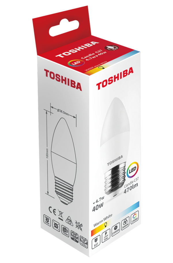 Ετικέτες: 3000K, 4.7W, C37, LED, TOSHIBA, Λάμπα