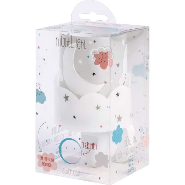 Παιδικό φωτιστικό νυκτός που εκπέμπει απαλό καθησυχαστικό φως για να βοηθήσει τους μικρούς μας φίλους να κοιμηθούν όλη τη νύχτα. Η τεχνολογία LED που χρησιμοποιείται εγγυάται τη μεγάλη διάρκεια ζωής του, καθώς και την ελάχιστη κατανάλωση ρεύματος. Κρύο στην επαφή διατίθεται με ενσωματωμένο διακόπτη ώστε να μην χρειάζεται να βγει από την πρίζα όταν δεν ανάβει. Το Moon Gray φωτιστικό νύκτας πρίζας LED συμπληρώνει τα υπόλοιπα φωτιστικά της συλλογής.