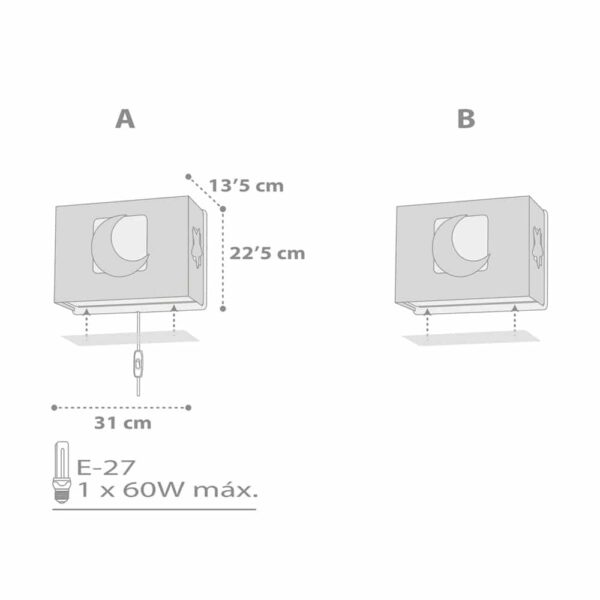 Μεγάλο σε μέγεθος παιδικό φωτιστικό απλίκα τοίχου, κατάλληλο για παιδιά και ιδανικά σχεδιασμένο για γενικό ή συμπληρωματικό φωτισμό. Φωτίζει και προσθέτει διασκεδαστικό χαρακτήρα και χαρούμενο άγγιγμα σε κάθε παιδικό δωμάτιο. Παρέχει ομοιόμορφο άπλετο φως δημιουργώντας περιβάλλον που ενθαρρύνει τα παιδιά να επιδοθούν σε ότι τους αρέσει περισσότερο στην διασκέδαση και την δημιουργικότητα! Το MoonLight Gray φωτιστικό απλίκα συμπληρώνει τα υπόλοιπα παιδικά φωτιστικά της συλλογής και είναι κατασκευασμένο εξ ολοκλήρου στην Ευρώπη.