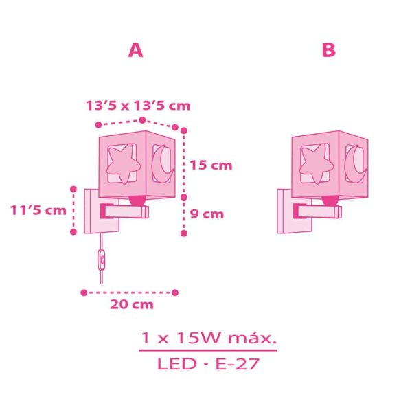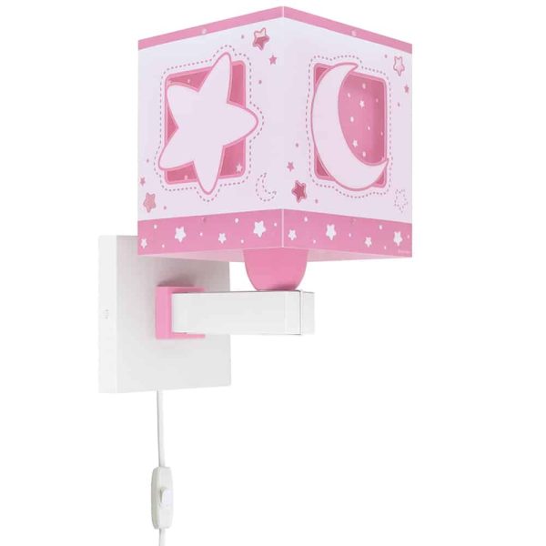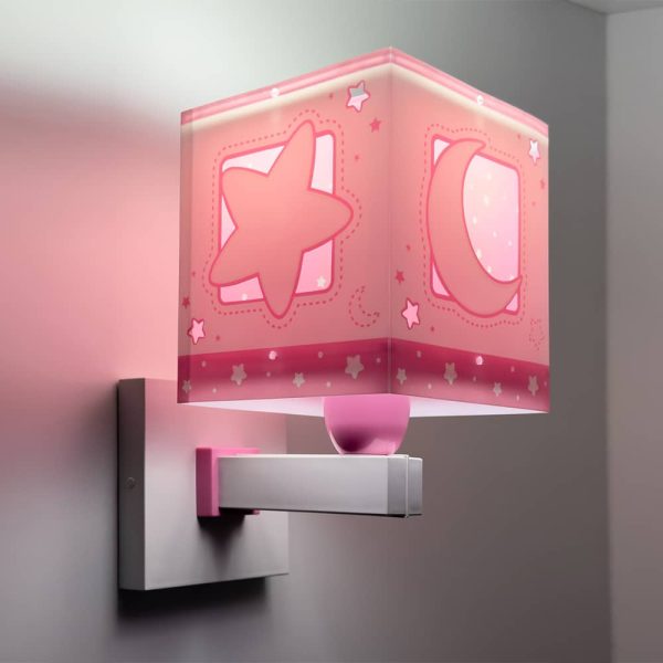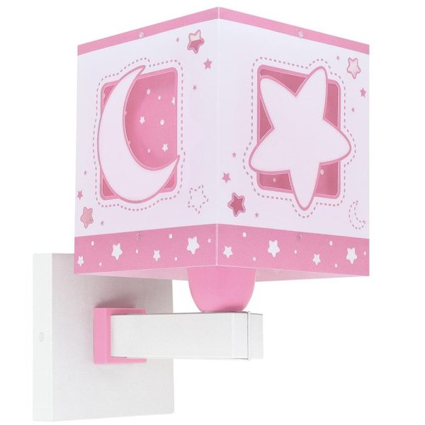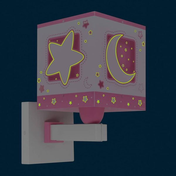 Η Moonlight Pink απλίκα τοίχου με θέμα από τον ουράνιο κόσμο των αστεριών και του φεγγαριού είναι ιδανικά σχεδιασμένη για γενικό ή συμπληρωματικό φωτισμό. Φωτίζει και προσθέτει διασκεδαστικό χαρακτήρα και χαρούμενο άγγιγμα σε κάθε παιδικό δωμάτιο ακόμα και στο σκοτάδι με τα εξωτερικά φωσφορίζοντα μέρη του. Η Moonlight Pink απλίκα τοίχου τοποθετείται στον τοίχο και είναι κατάλληλη ακόμα και για διάβασμα πάνω από το προσκέφαλο του κρεβατιού. Παρέχει ομοιόμορφο φως δημιουργώντας περιβάλλον που ενθαρρύνει τα παιδιά να επιδοθούν σε ότι τους αρέσει περισσότερο, διασκεδάζοντας ή δημιουργώντας! Η Moonlight Pink απλίκα τοίχου είναι διπλού τοιχώματος και συμπληρώνει τα υπόλοιπα παιδικά φωτιστικά της συλλογής. Είναι κατασκευασμένη εξ ολοκλήρου στην Ευρώπη με πιστοποιητικά ασφαλείας.