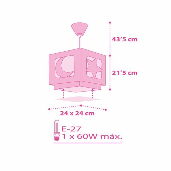 Καλωσορίστε το παιδί σας σε ένα δωμάτιο πλημμυρισμένο από μαγεία με αυτό το παιδικό φωτιστικό οροφής κατάλληλο για γενικό φωτισμό. Προσθέτει διασκεδαστικό χαρακτήρα και χρώμα σε κάθε παιδικό δωμάτιο ακόμα και στο σκοτάδι με τα τυπωμένα στο εξωτερικό του τοίχωμα φωσφορίζοντα μέρη. Παρέχει ομοιόμορφο και άπλετο φωτισμό δημιουργώντας περιβάλλον που ενθαρρύνει τα παιδιά να επιδοθούν σε ότι τους αρέσει περισσότερο – διασκέδαση και δημιουργικότητα! Απόλυτα ασφαλές ώστε τα παιδιά να μπορούν να μελετήσουν, να παίξουν και να κοιμηθούν παρέα με τον αγαπημένο τους ήρωα. Το MoonLight Pink κρεμαστό φωτιστικό οροφής φωσφορίζον συμπληρώνει τα υπόλοιπα παιδικά φωτιστικά της συλλογής και είναι εξαιρετικά εύκολο στην εγκατάστασή του.