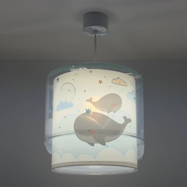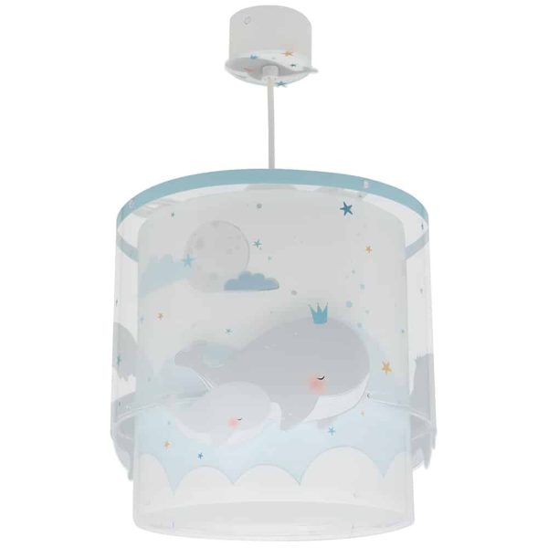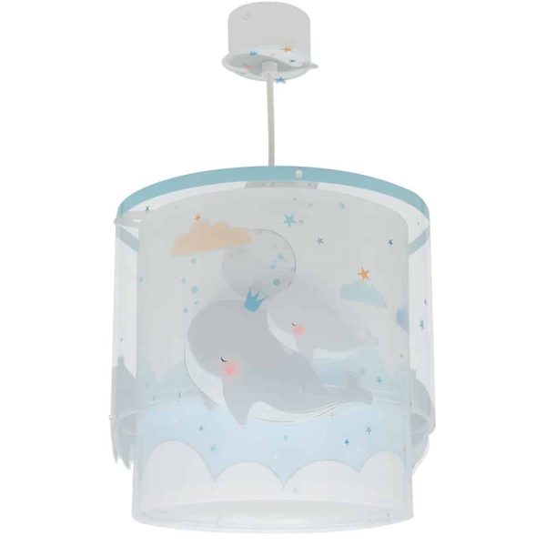 Καλωσορίστε το παιδί σας σε ένα δωμάτιο πλημμυρισμένο από μαγεία με αυτό το παιδικό φωτιστικό οροφής με θαλάσσιο θέμα και χαριτωμένες φάλαινες, κατάλληλο για γενικό φωτισμό. Είναι διπλού τοιχώματος με διάφανο το εξωτερικό του. Το Whale Dreams Blue φωτιστικό οροφής είναι κατασκευασμένο από συνθετικό υλικό αντοχής πολυπροπυλενίου και ανεξίτηλες εκτυπώσεις σε απαλούς χρωματισμούς. Παρέχεται διαχυτής φωτός, που προστατεύει τα μάτια των παιδιών μικρότερων ηλικιών αλλά και προσφέρει ομοιόμορφο φωτισμό σε κάθε παιδικό δωμάτιο. Το Whale Dreams Blue φωτιστικό οροφής συμπληρώνει τα υπόλοιπα φωτιστικά της συλλογής, τοποθετείται εύκολα και είναι κατασκευασμένο εξ ολοκλήρου στην Ευρώπη.